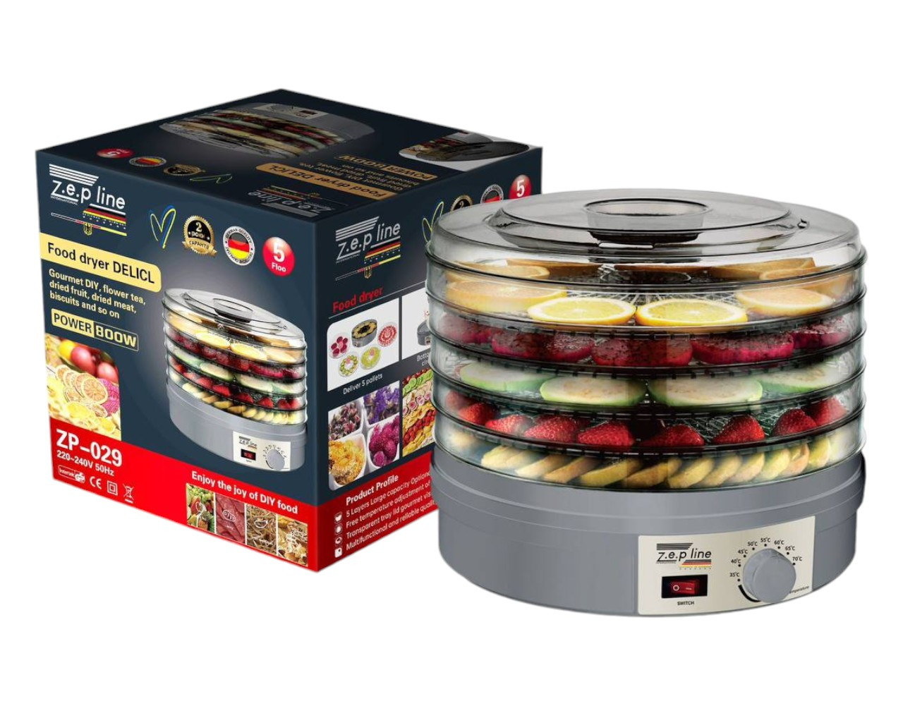 Сушарка для овочів і фруктів Zepline ZP-029 електрична 800 Вт 5 секцій